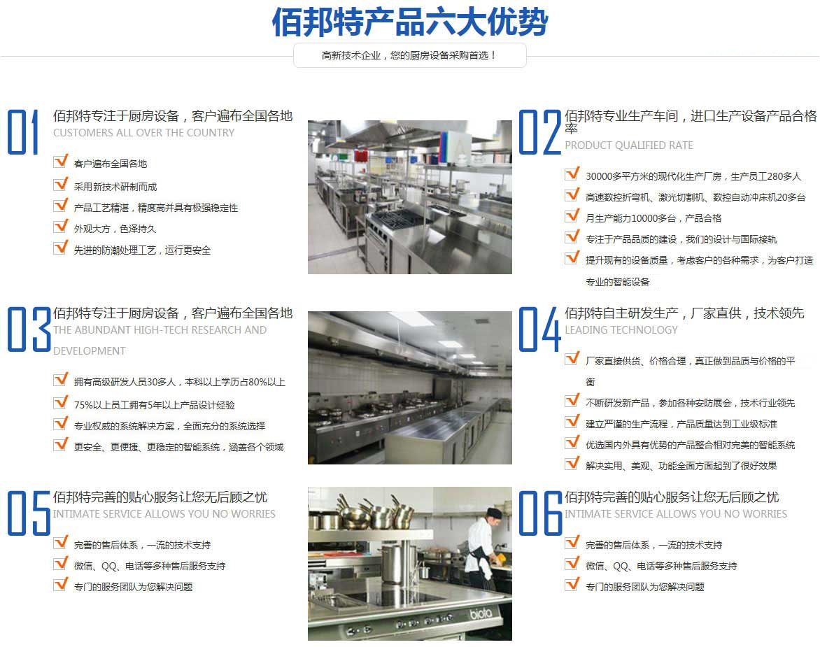 天津佰邦特廚房設(shè)備有限公司2016年創(chuàng)建于天津市北辰區(qū),是一家集科研、設(shè)計、制造、銷售、安裝、維修服務(wù)為一體的專業(yè)廚房設(shè)備生產(chǎn)企業(yè),是目前天津市乃至沿海地區(qū)競爭實力強的商用廚房設(shè)備企業(yè)之一。主營天津廚具,天津廚具廠,天津廚房設(shè)備,天津廚具設(shè)備,天津廚房工程、天津廚具工程,天津廚房設(shè)備公司,天津不銹鋼廚具批發(fā),天津廚房設(shè)備廠家,天津酒店廚房設(shè)備工程,天津工廠廚房設(shè)備,天津廚房設(shè)計,天津白鐵工程,天津廚具批發(fā),天津廚房排煙工程等配套設(shè)施。累積了豐富的實踐經(jīng)驗,蓄備了一支高素質(zhì)、專業(yè)化的人才隊伍。歷年來秉承著“創(chuàng)新、務(wù)實、求真“的企業(yè)......![]()